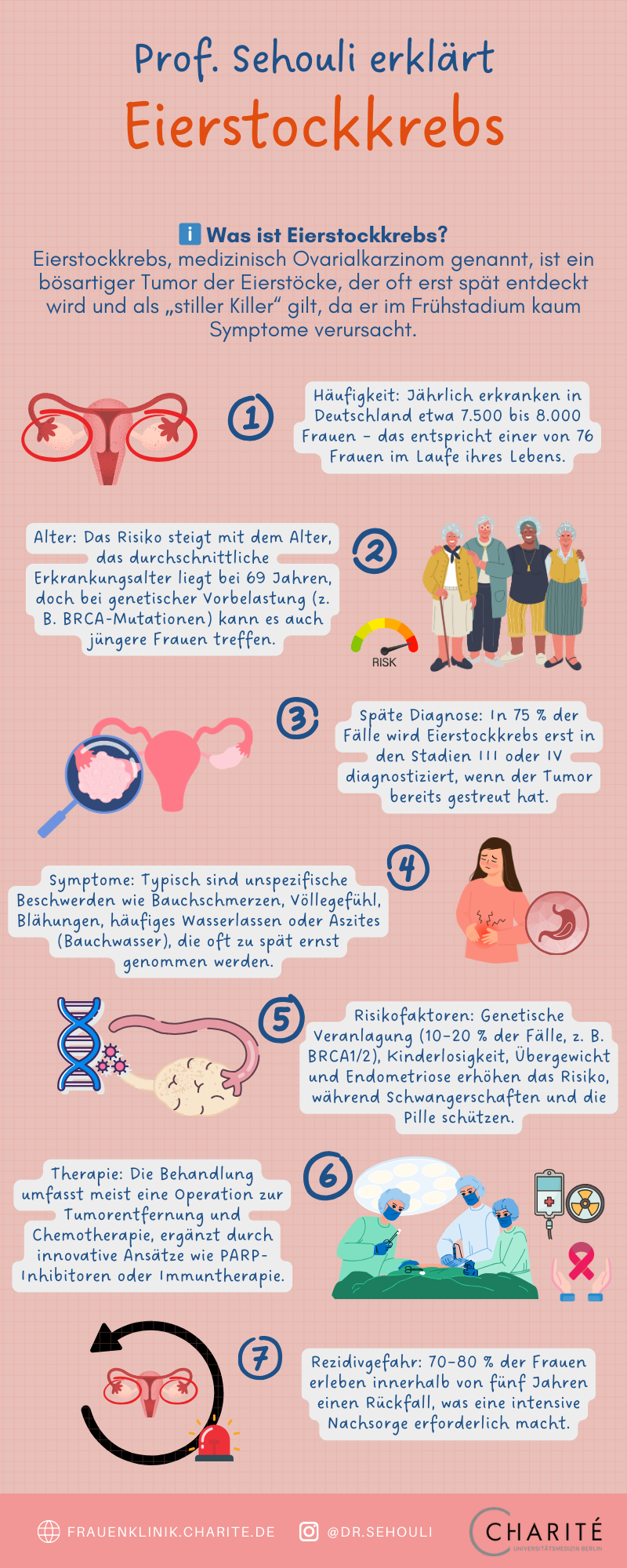 Eierstockkrebs – medizinisch Ovarialkarzinom – ist eine der tückischsten Krebserkrankungen bei Frauen. Als Europäisches Kompetenzzentrum für Eierstockkrebs (EKZE) an der Charité – Universitätsmedizin Berlin setzen wir uns täglich dafür ein, betroffenen Frauen die bestmögliche Versorgung zu bieten und die Forschung voranzutreiben.