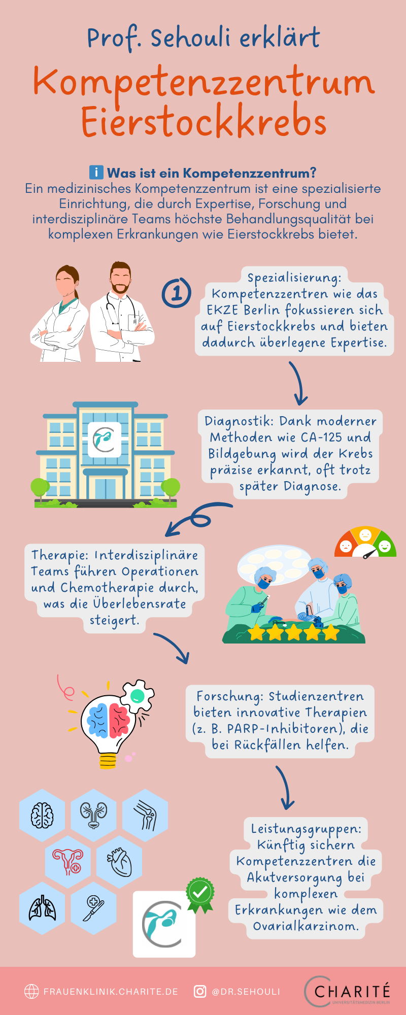 Ein Kompetenzzentrum ist eine spezialisierte Einrichtung, die sich auf bestimmte Erkrankungen oder Fachgebiete konzentriert und durch Expertise, moderne Technologien und Forschung höchste Behandlungsqualität bietet. Es ist wichtig, weil es bei komplexen Krankheiten wie Eierstockkrebs durch interdisziplinäre Teams und Studienzugang bessere Diagnosen, Therapien und Überlebenschancen ermöglicht.